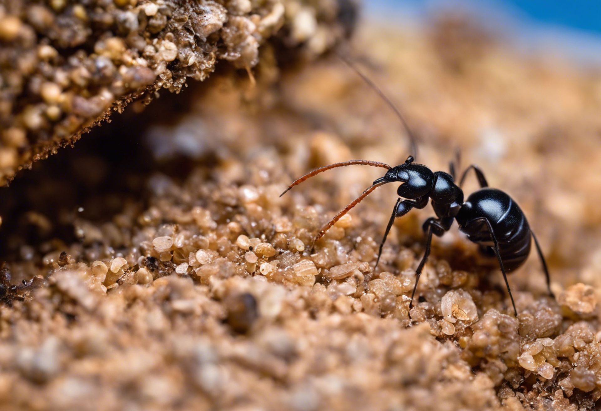 Carpenter ants (genus Camponotus) are large, social insects known for excavating wood to create nests, which can lead to significant structural damage in homes. Unlike termites, they do not eat wood for nutrients; they consume protein, fats, and sugars, often foraging at night.